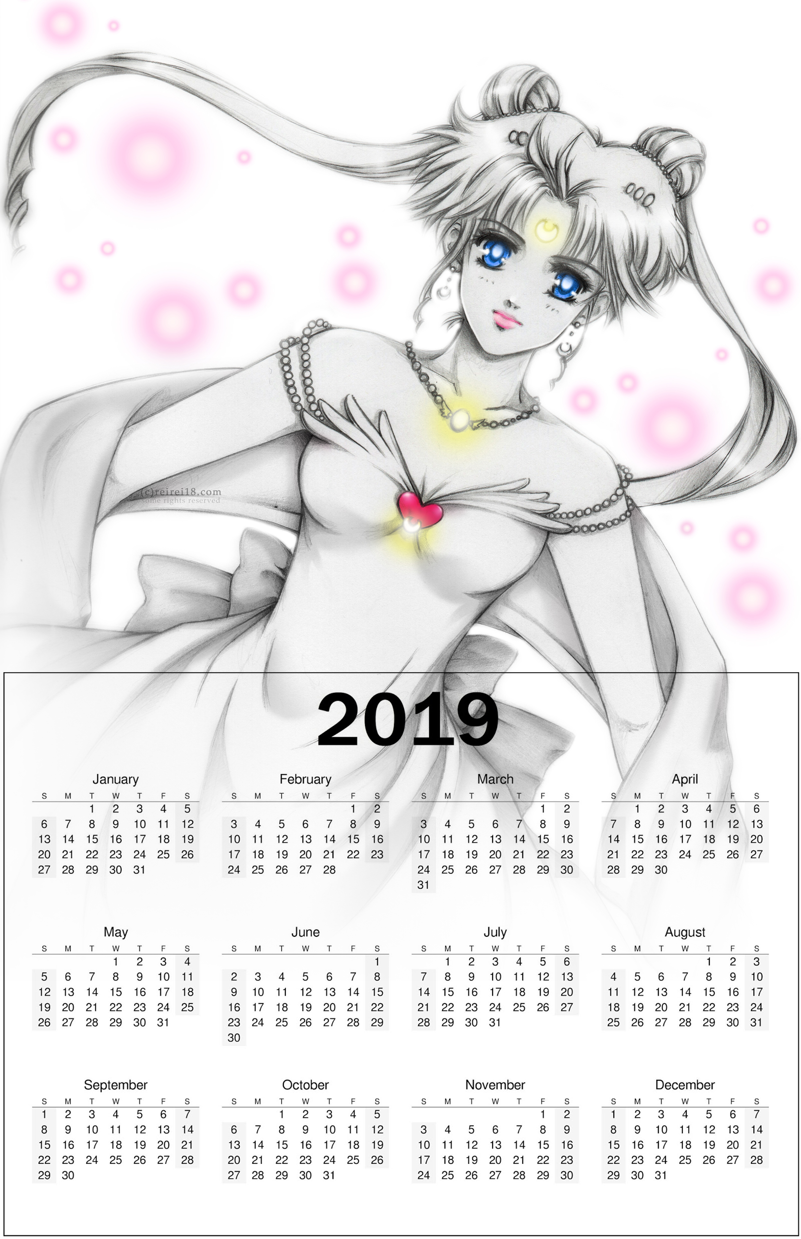 With that said and as the header picture in this calendar suggests, I will be focusing on my Sailor Moon artworks for 2019. I was listening to inspirational and motivational audios and heard several times to focus on what you’re good at if you want to be successful. May this make sense to people who are experiencing similar or related dilemmas in life haha! My previous conventions proved me that my Sailor Moon fanarts are still my best sellers and attracting most attention along with my original characters. Some fanart from other series are still gonna take space in my booth, especially the series that inspires me to the point that I want to draw them and share to everyone but I will claim the “Sailor Moon booth” in conventions so I can be easily recognized among the crowds hehe.. coz I heard people say “that Sailor Moon booth” in some cons, might as well stick to it! Thanks for the ideas and suggestions! I’ll see you in my next conventions this year, check my activities for the list of confirmed locations. I missed the registrations for some cons but I appreciate the invite! Please keep inviting me to the cons near you~
